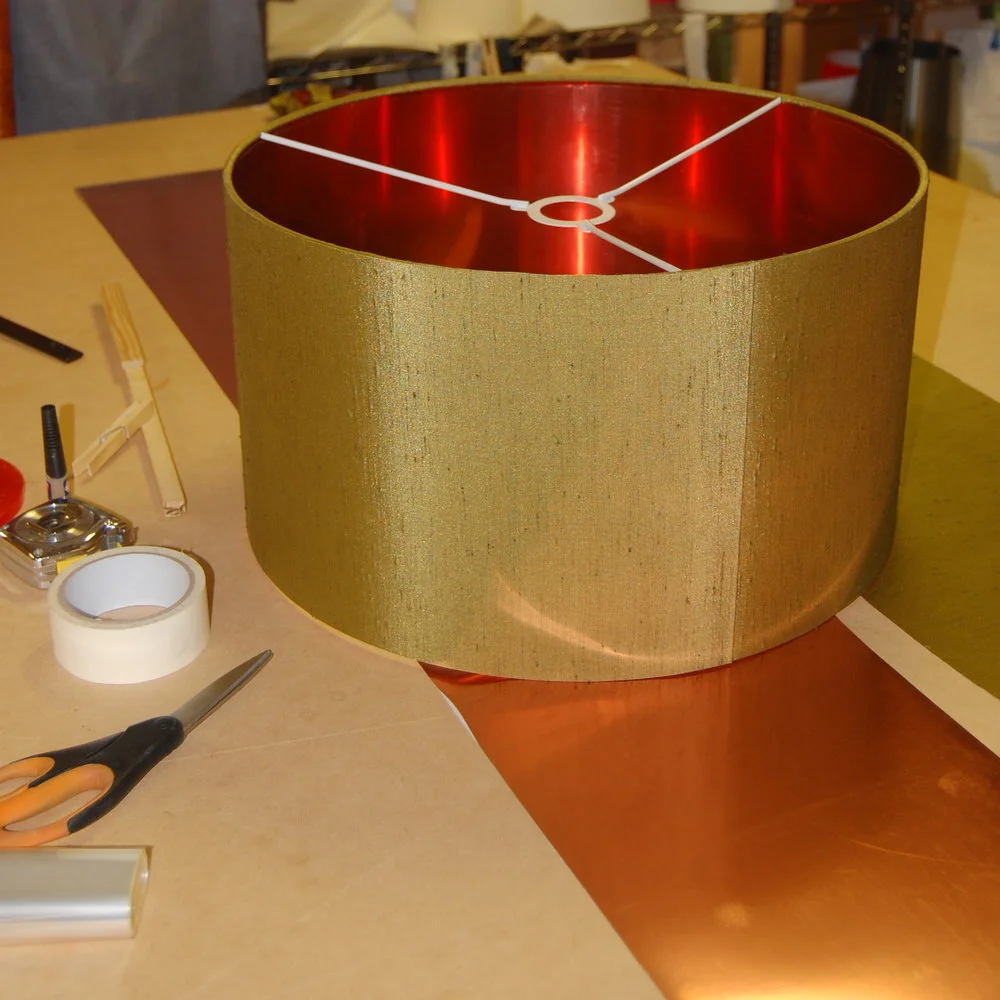 Configure a lamp shade by shape | size | covering | lining | colour and we then hand make it for you in our workshop in Lancashire.